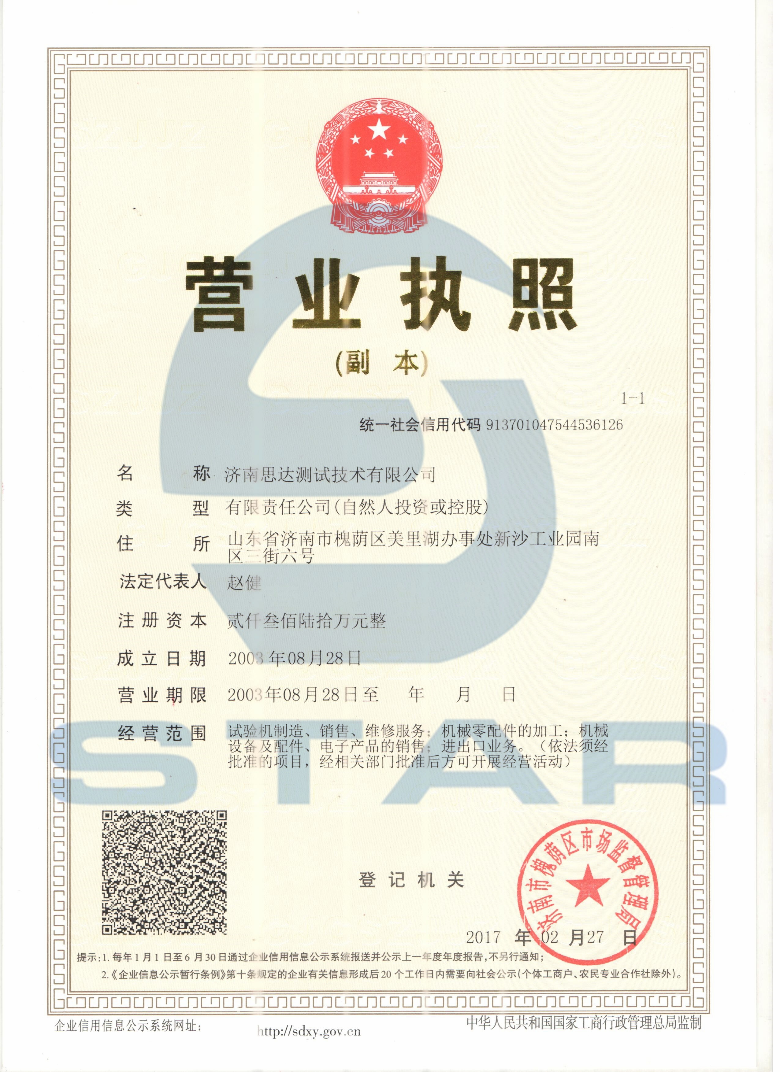 濟南思達營業(yè)執(zhí)照、地址變更通知: